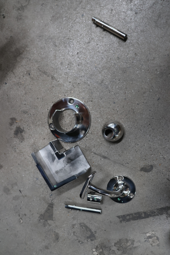 Пристенок под диаметр 38.1 мм. Три отверстия под саморез с потайной головкой 5.5 мм. Деталь литая, полированная. Марка стали - AISI 304.