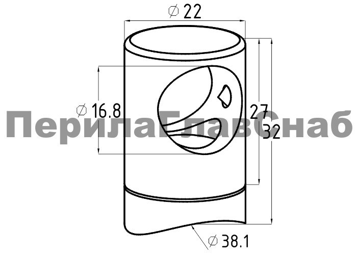 Предназначен для крепления нержавеющего ригеля (тетивы,струны) диаметром 16 мм к стойке ограждения Ø38.1 мм.