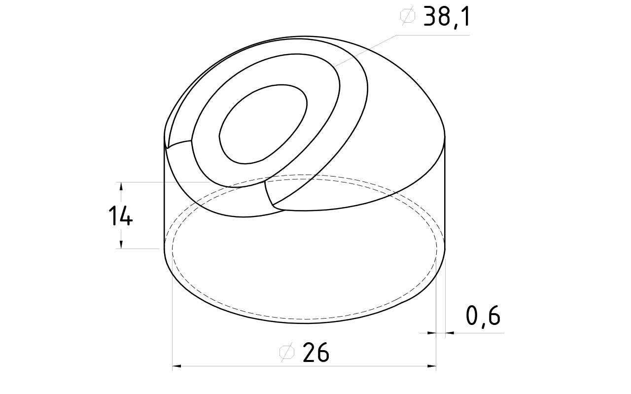 Наконечник штампованный (СПС) косой 30° на трубу Ø16 мм, для поручня Ø38.1 мм, полированный, нержавеющий, (AISI 201) k212-3