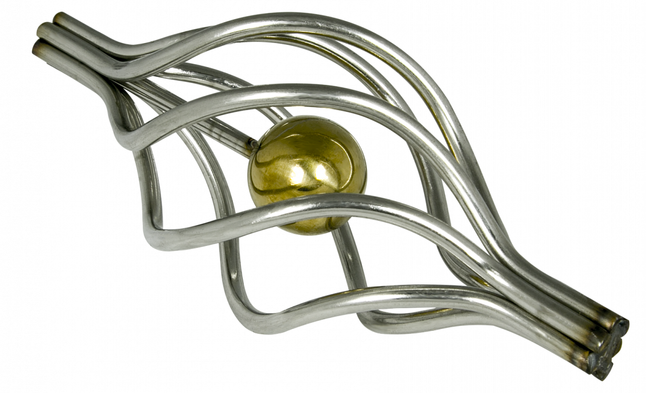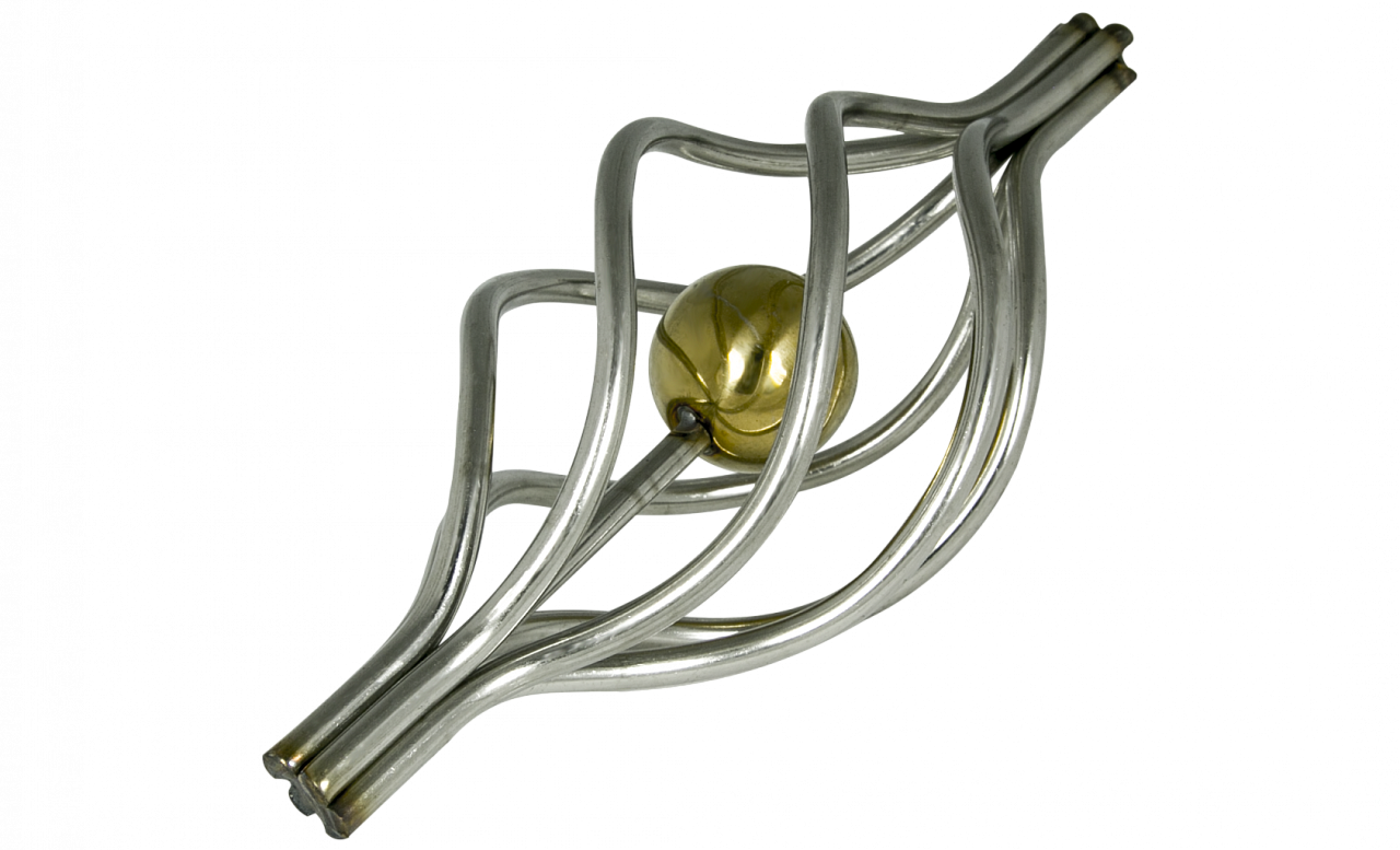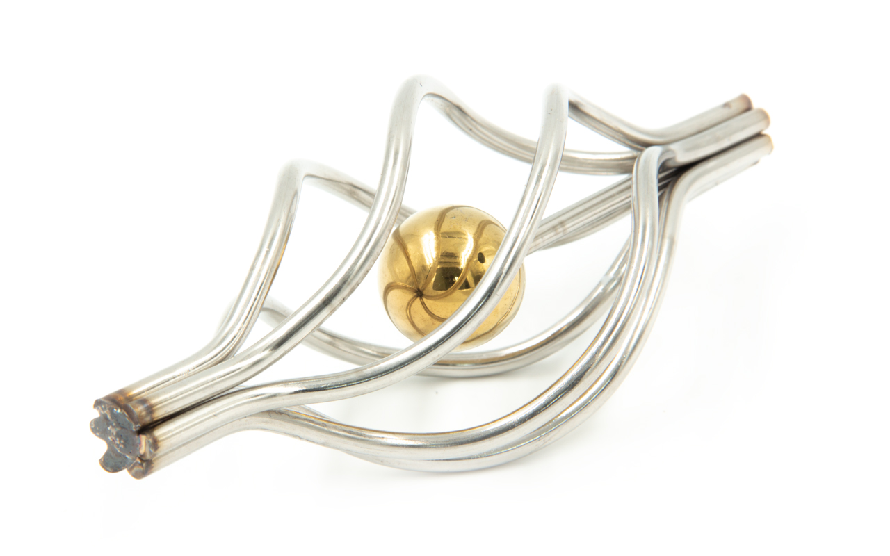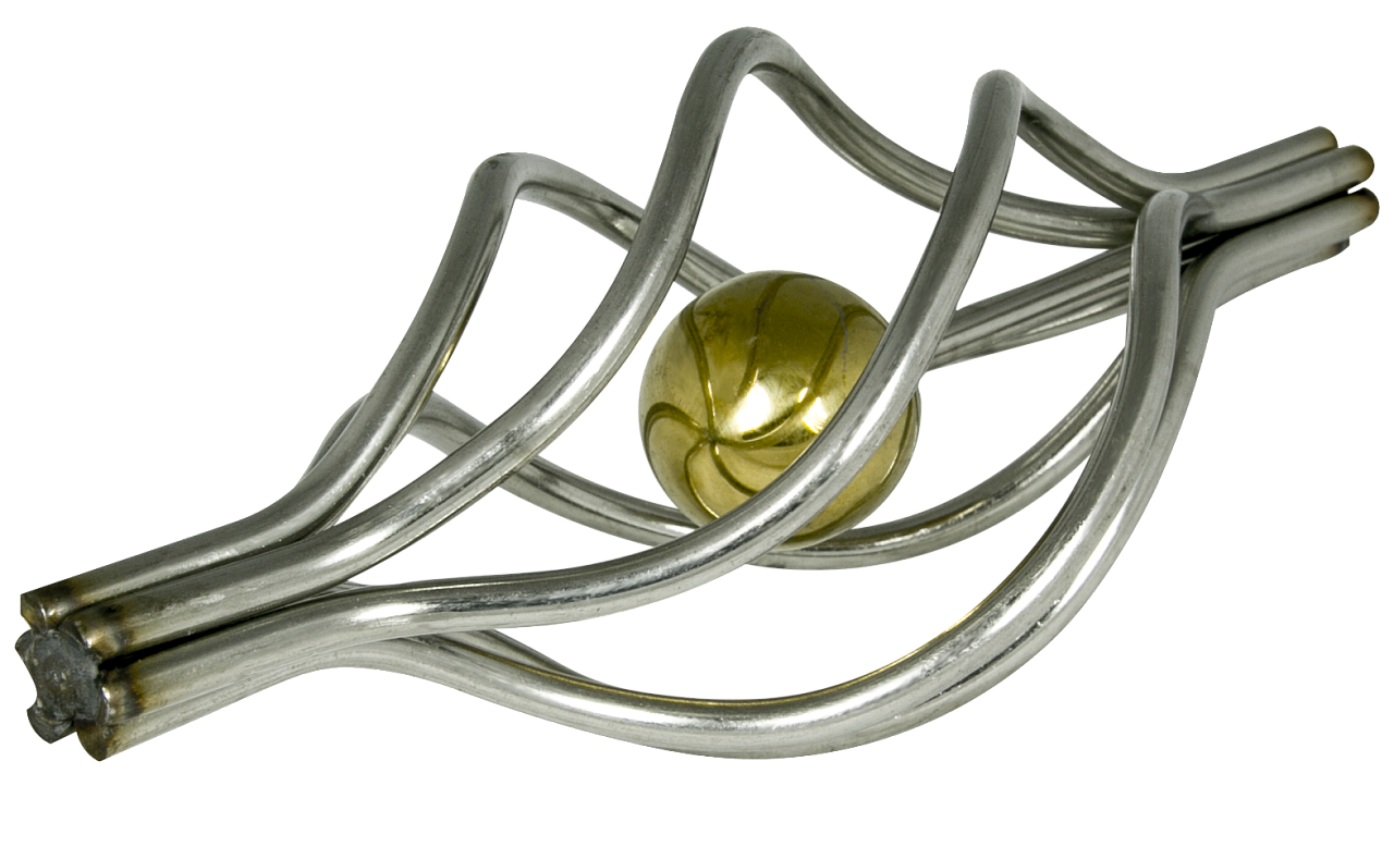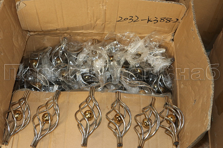 Декоративная вставка (корзинка) для стойки Ø25 мм, с золотым шаром. Деталь полированная, литая. Марка детали - AISI 304