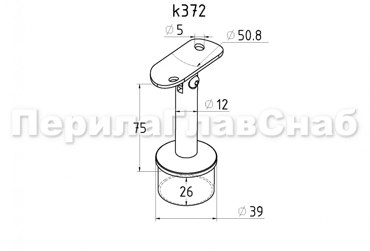 Вставляется в трубу Ø42.4 мм под поручень Ø50.8 мм.
