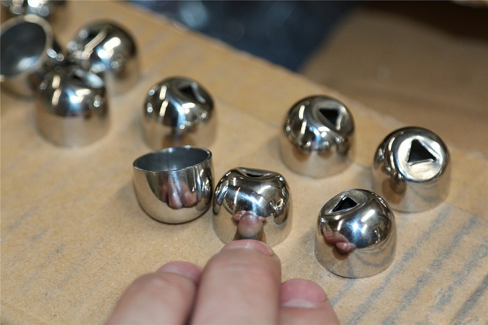 Наконечник штампованный (СПС) косой 30° на трубу Ø16 мм, для поручня Ø38.1 мм, полированный, нержавеющий, (AISI 201) k212-3
