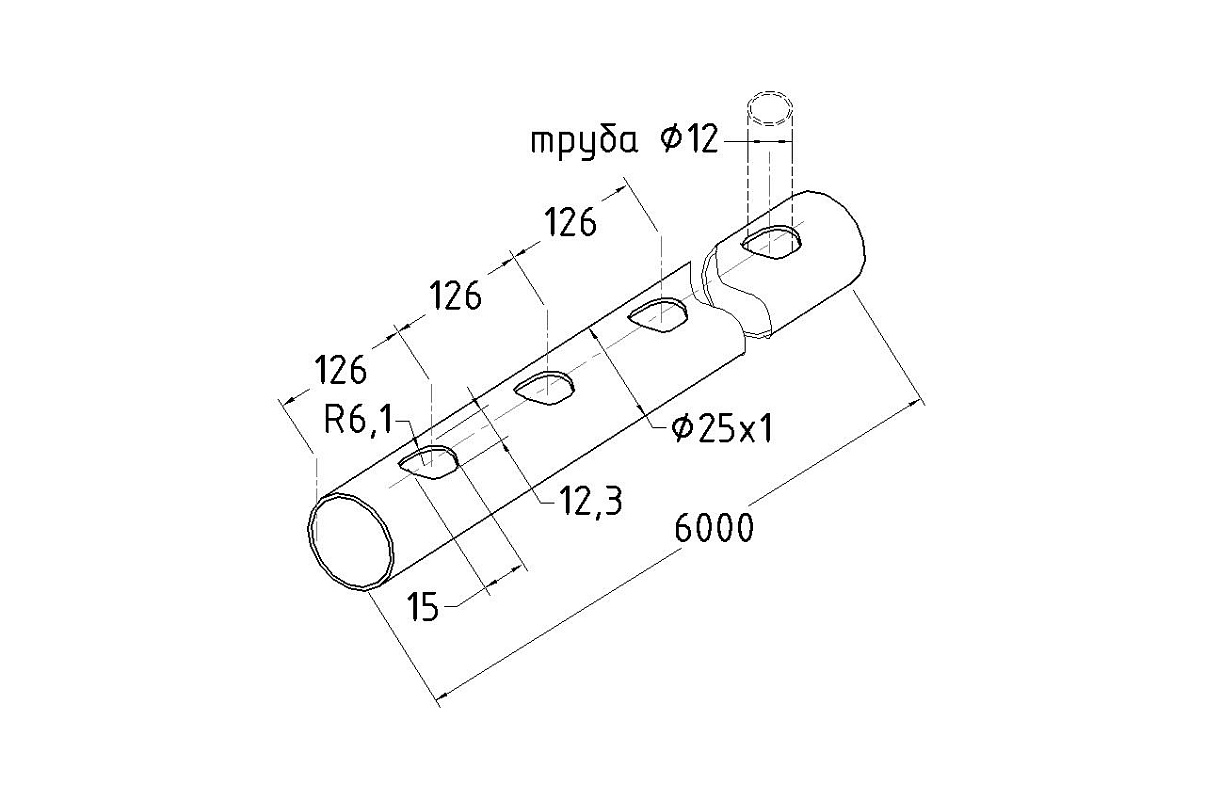 Труба AISI 304 25х1х6000, с перфорацией под Ø12, 30°, GRIT 600 837-5