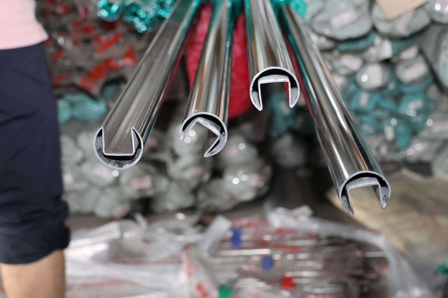 Труба Ø42.4 мм, с пазом 24х24 мм под стекло, тройная полировка 800GRIT, AISI 304