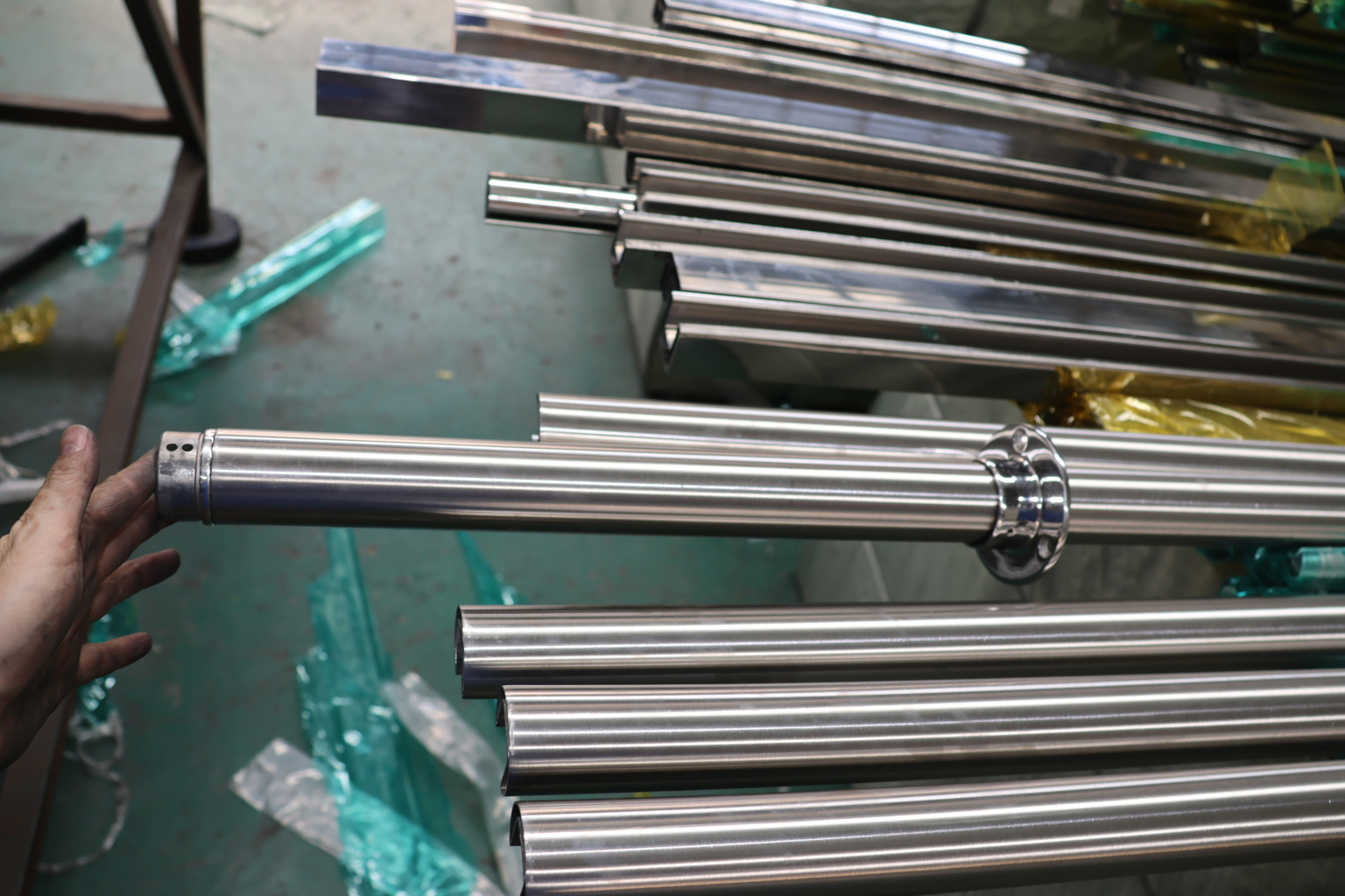 Труба Ø42.4 мм, с пазом 24х24, тройная полировка 800GRIT, (AISI 201) k820