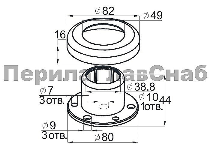 Фланец стойки 42.4/80 х 5 (4,3) х AISI 304 #200 3 отв х М10 х 20 k116-42-4 купить в Красноярске