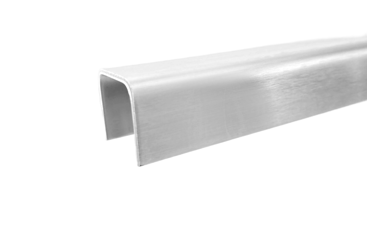Этот П-образный профиль (пэшка) применяется в цельностеклянных ограждениях, в душевых кабинах и ограждениях на несущем стекле. Сделан из нержавеющей стали 304 марки. Обратите внимание, что толщина стенки 1.5 мм! Длина профиля 2000 мм (2 метра).