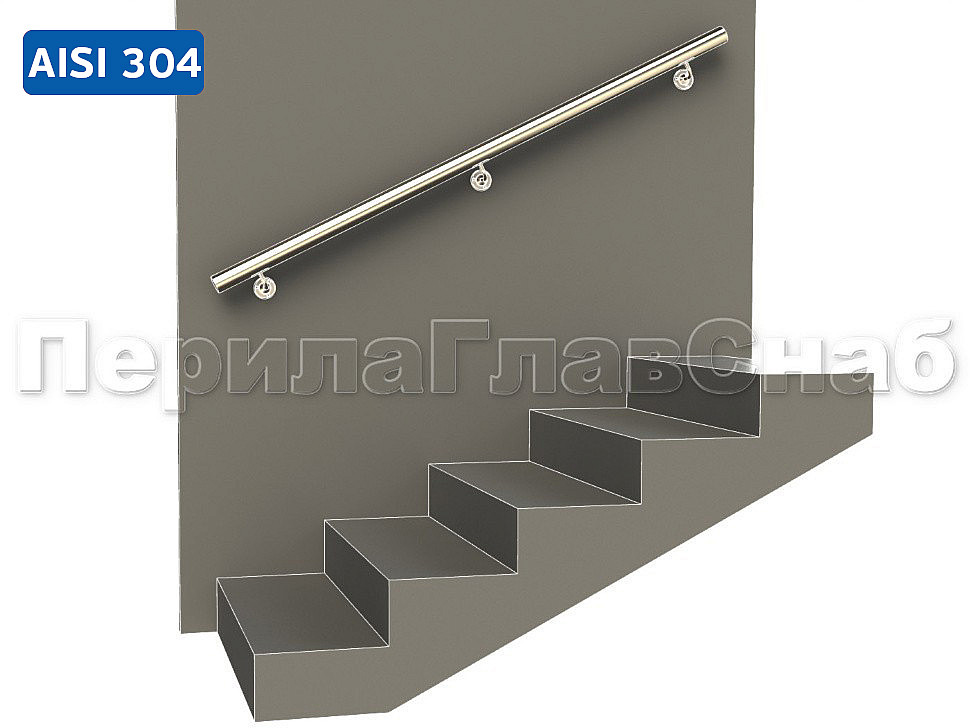 Готовый пристенный поручень с 4 держателями, длина 3300 мм (AISI 304) k730-33 купить в Красноярске