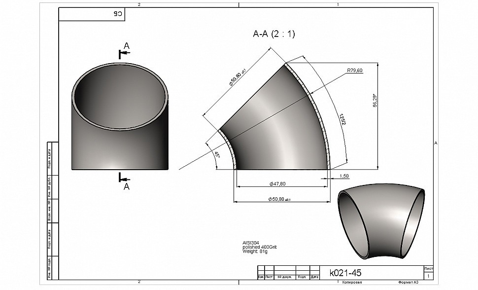 Отвод поручня под сварку Ø50.8х1.5 мм, 400 Grit, (AISI 304) k021 купить в Красноярске