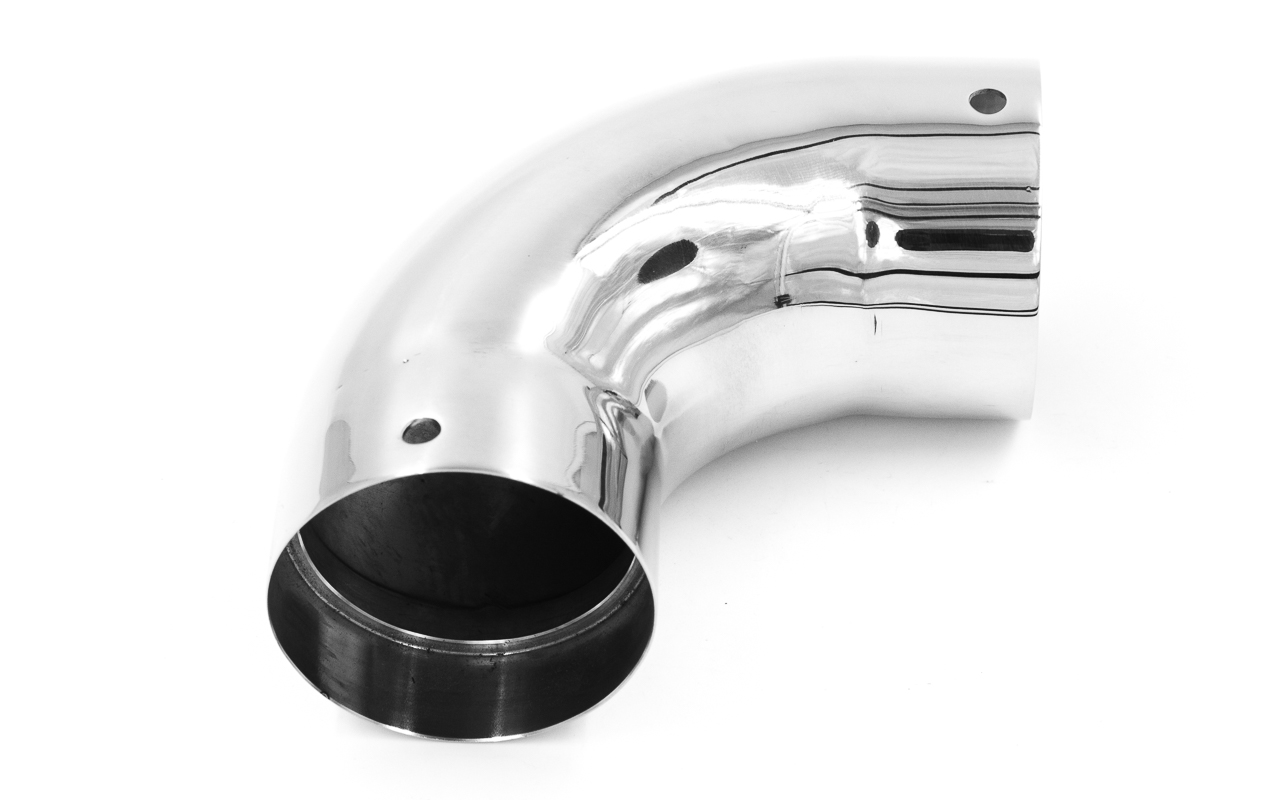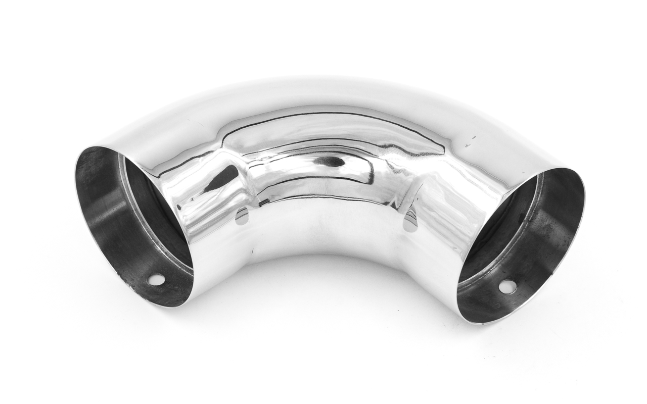 Поворот 90 градусов для круглого пластикового поручня. Деталь полированная, литая, марка стали - AISI 304