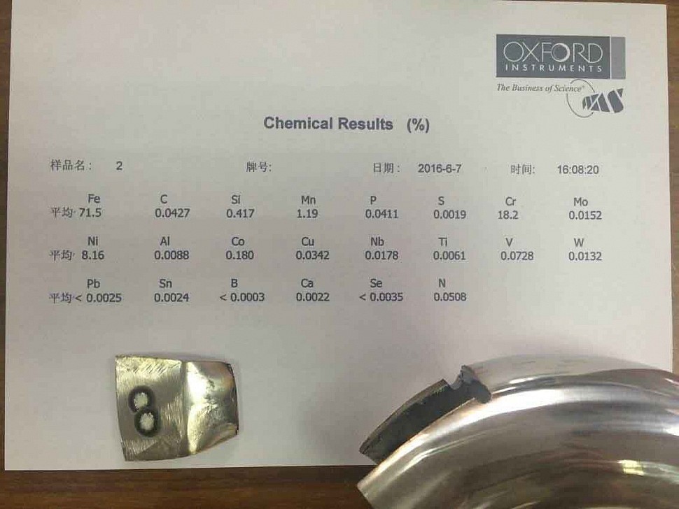Сечение кромки отвода представляет собой круг! Отвод с самой распространенной полировкой в 600 Grit. Аналог из 201 марки стали k021-8.