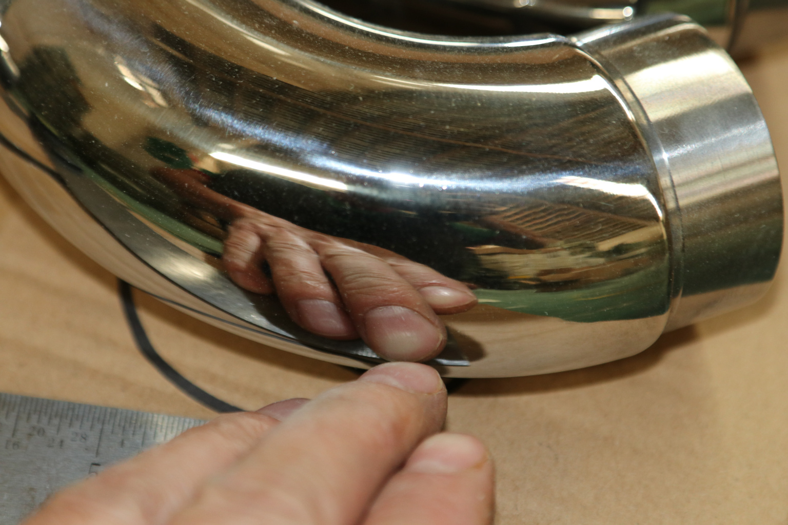 Отвод оконечный литой Ø38.1х100х1,45 мм, с круглой заглушкой, полированный 600 Grit, AISI 304, k384