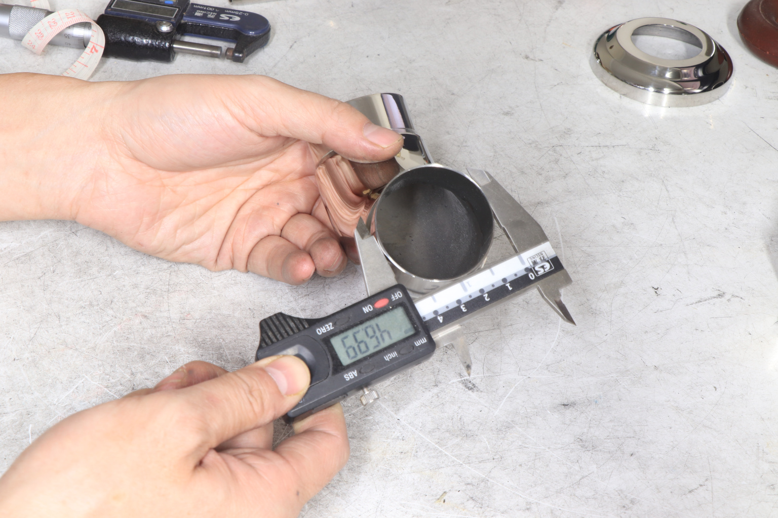 Наконечник палец регул. 65 мм, с ложементом, Ø38.1х1.5хAISI 304 #600 k006-2