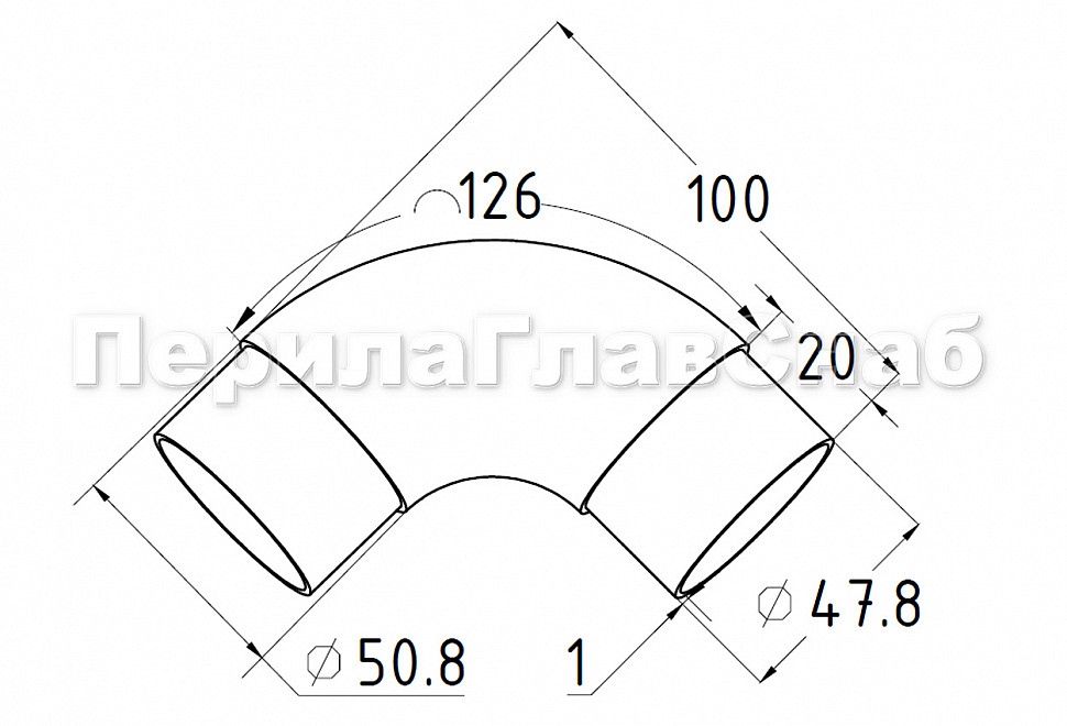 Отвод поручня под сварку под Ø50.8 мм, 400 Grit, (AISI 201) k021-8 купить в Красноярске