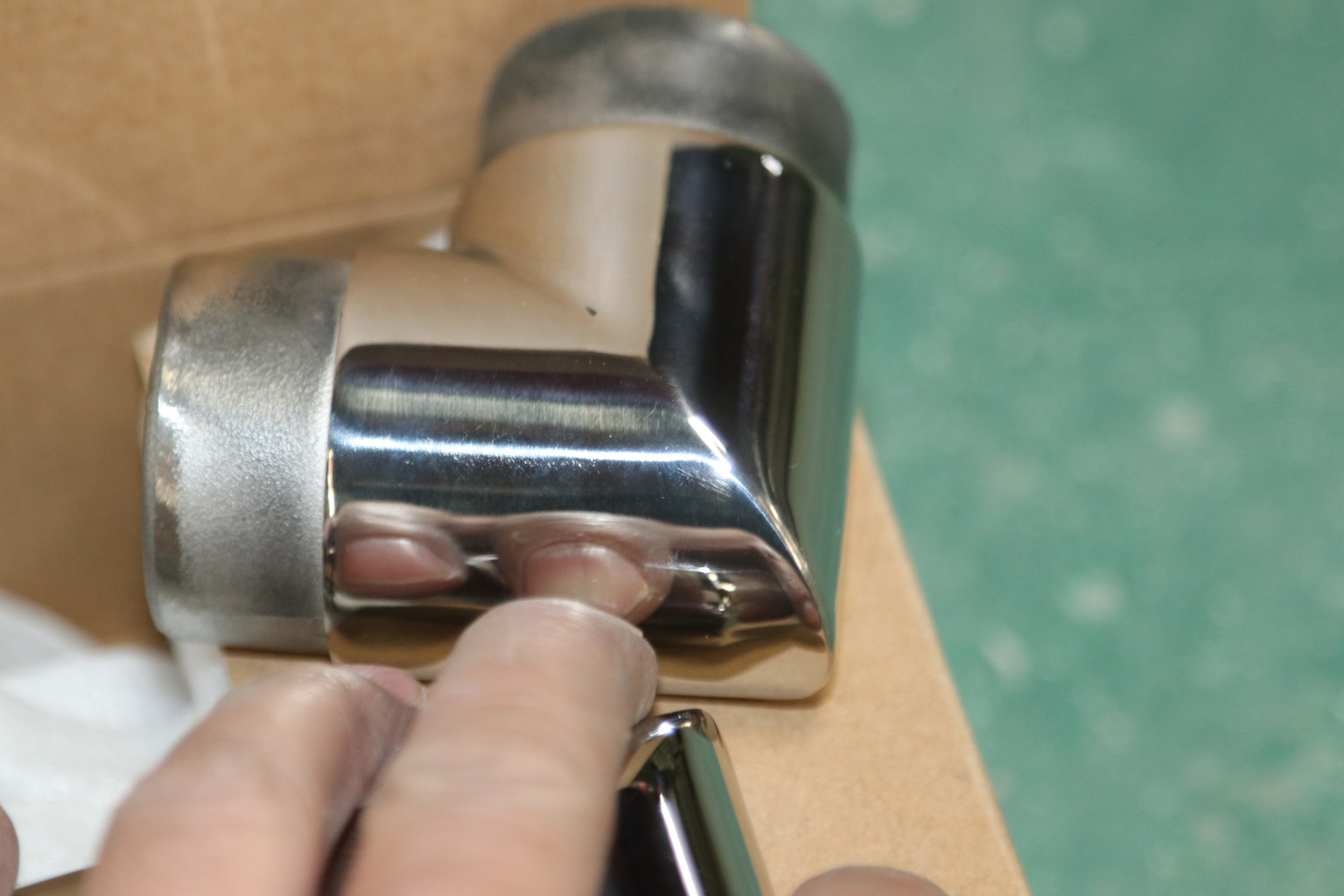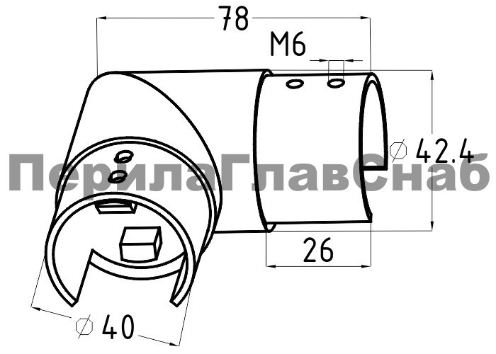 Фитинг предназначен для поворота поручня самосборных ограждений с несущим стеклом под углом 90 градусов в горизонтальной плоскости.