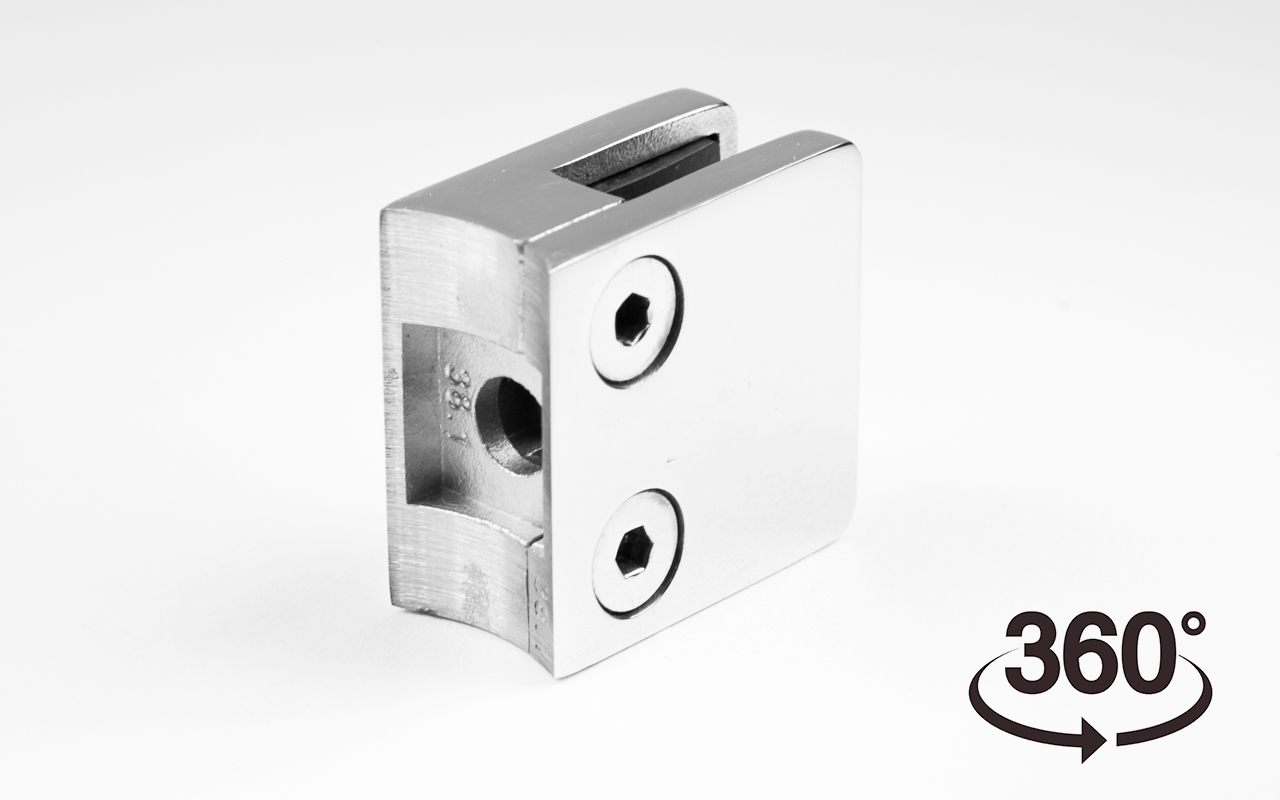Стеклодержатель литой квадратный с вставками под стекло 8-10 мм (4+4 мм), на стойку Ø38.1 мм, 41х22х42, полированный, (AISI 304) k004-10