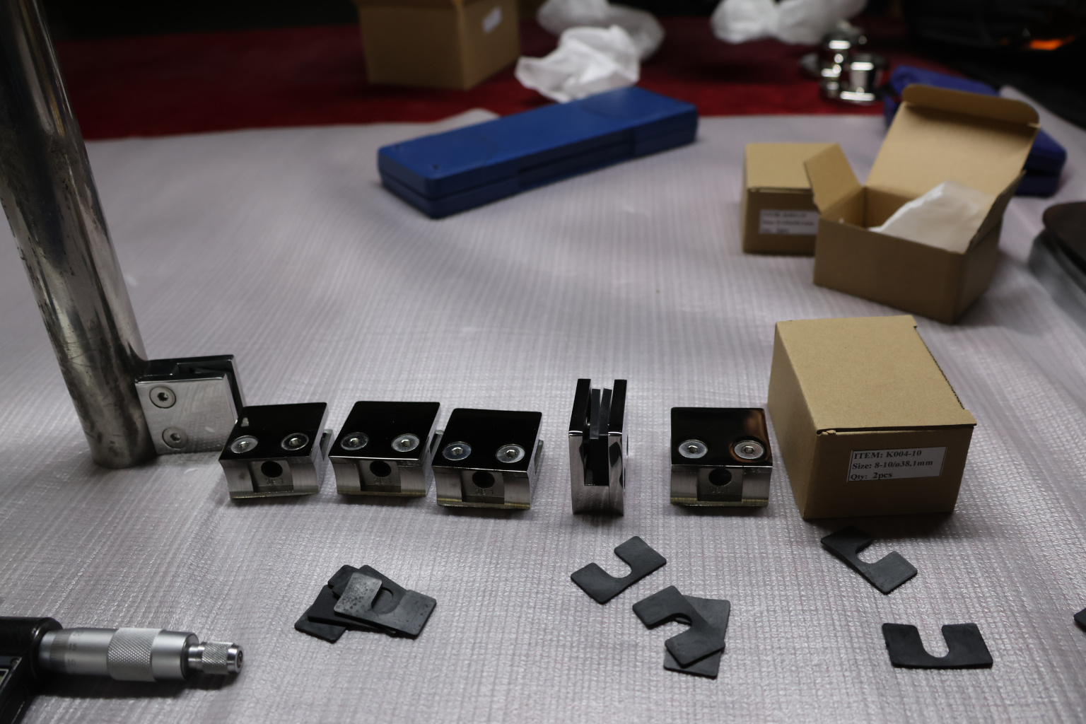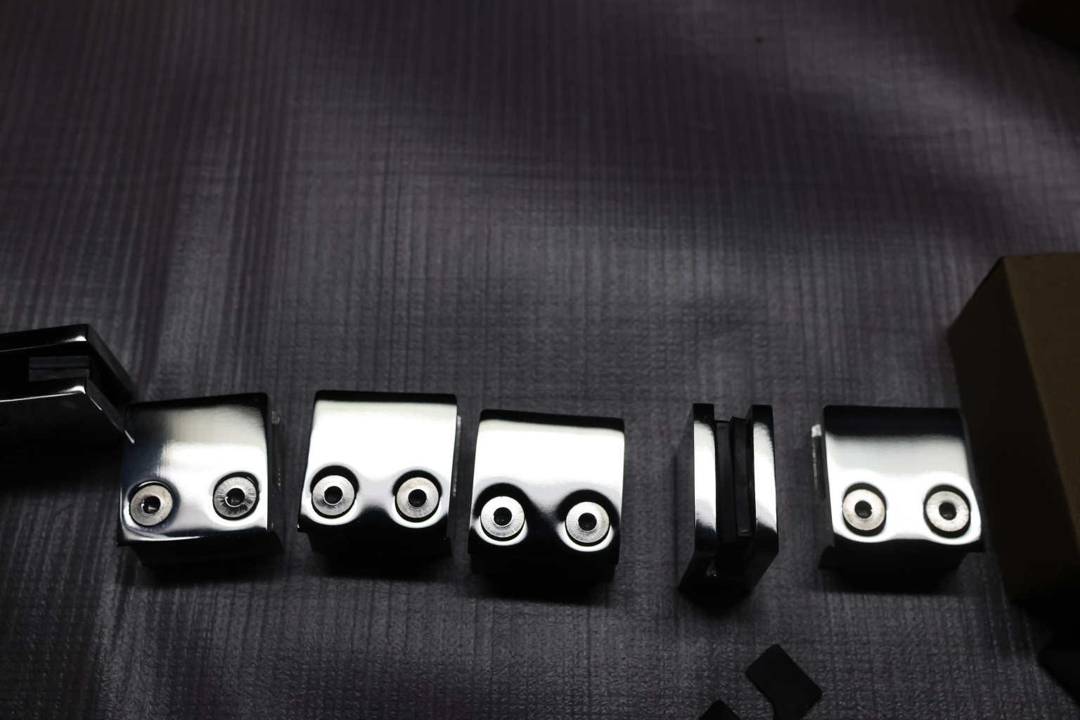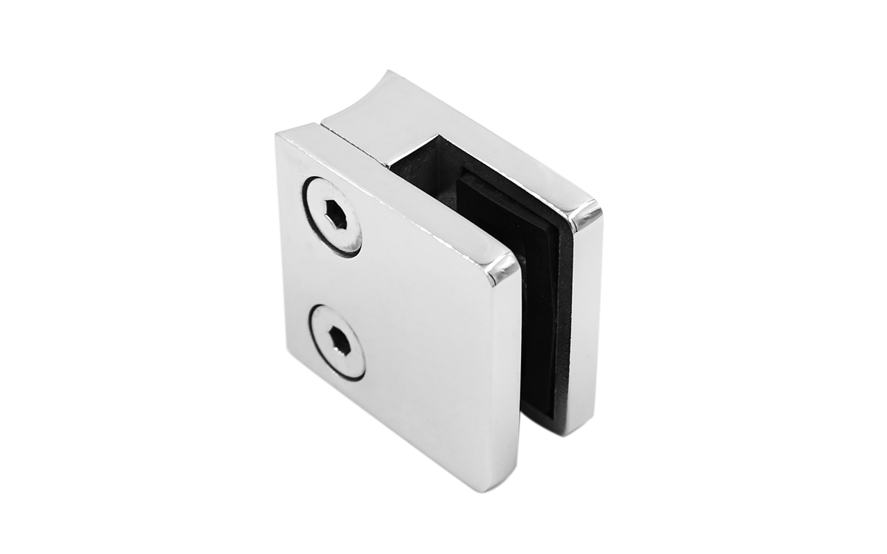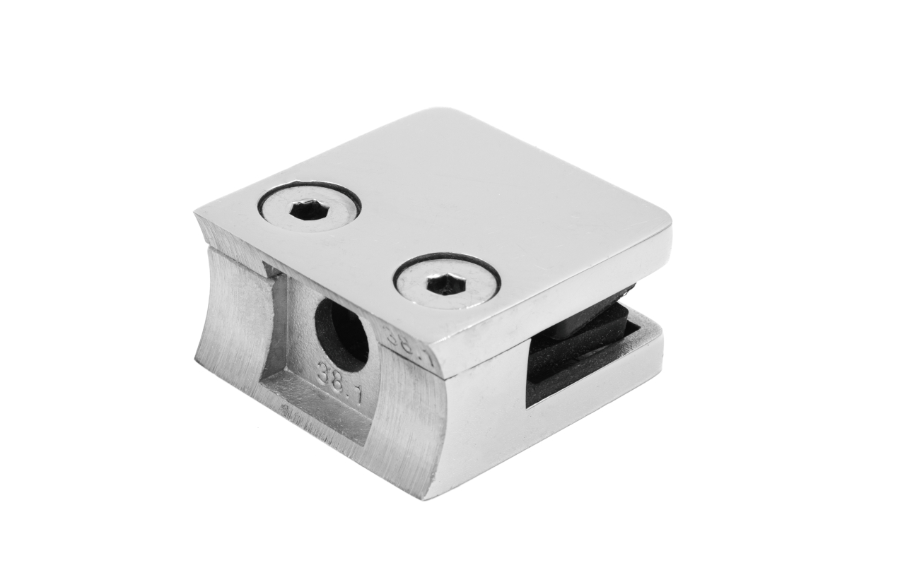 Стеклодержатель литой квадратный с вставками под стекло 8-10 мм (4+4 мм), на стойку Ø38.1 мм, 41х22х42, полированный, (AISI 304) k004-10