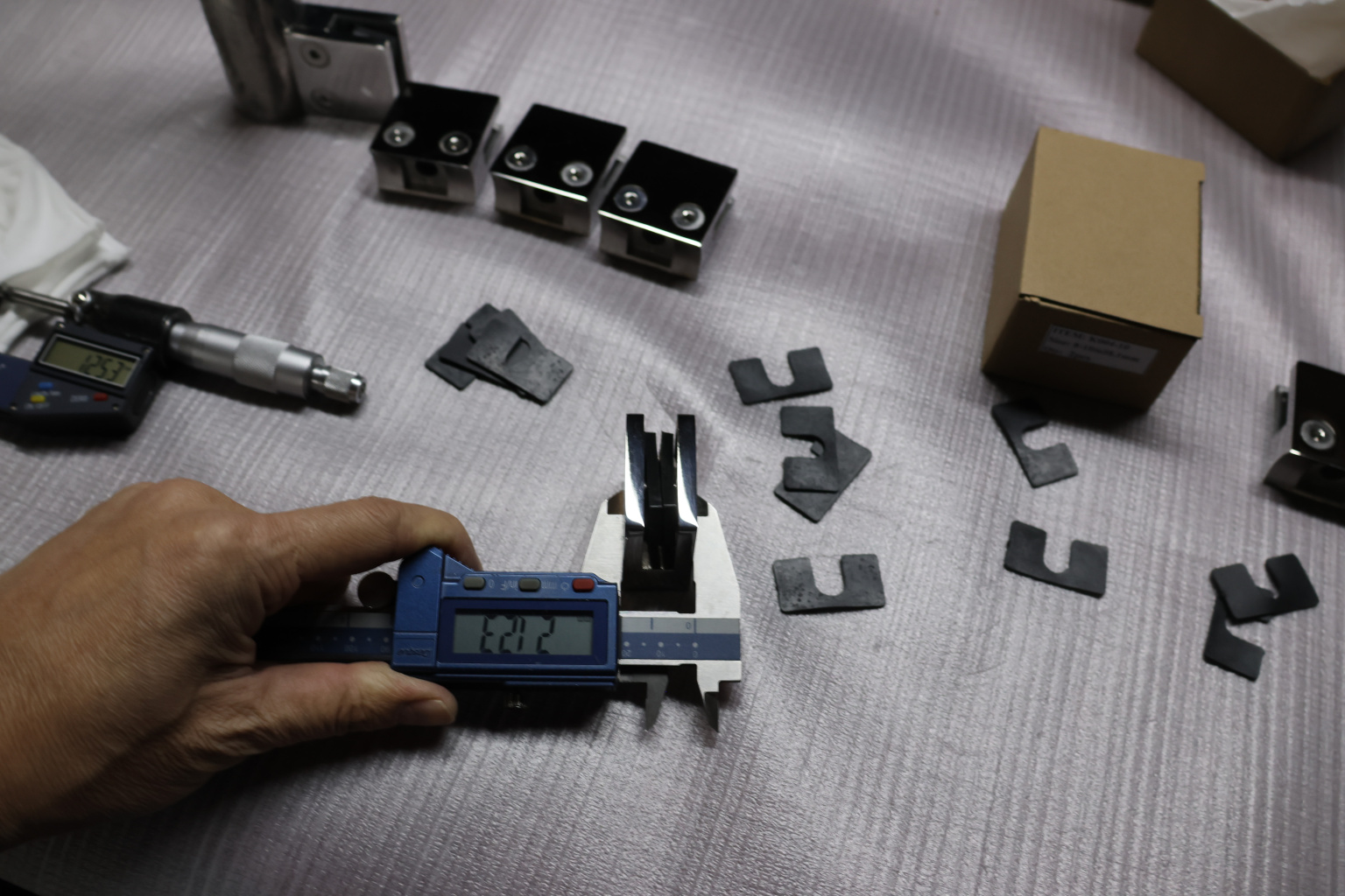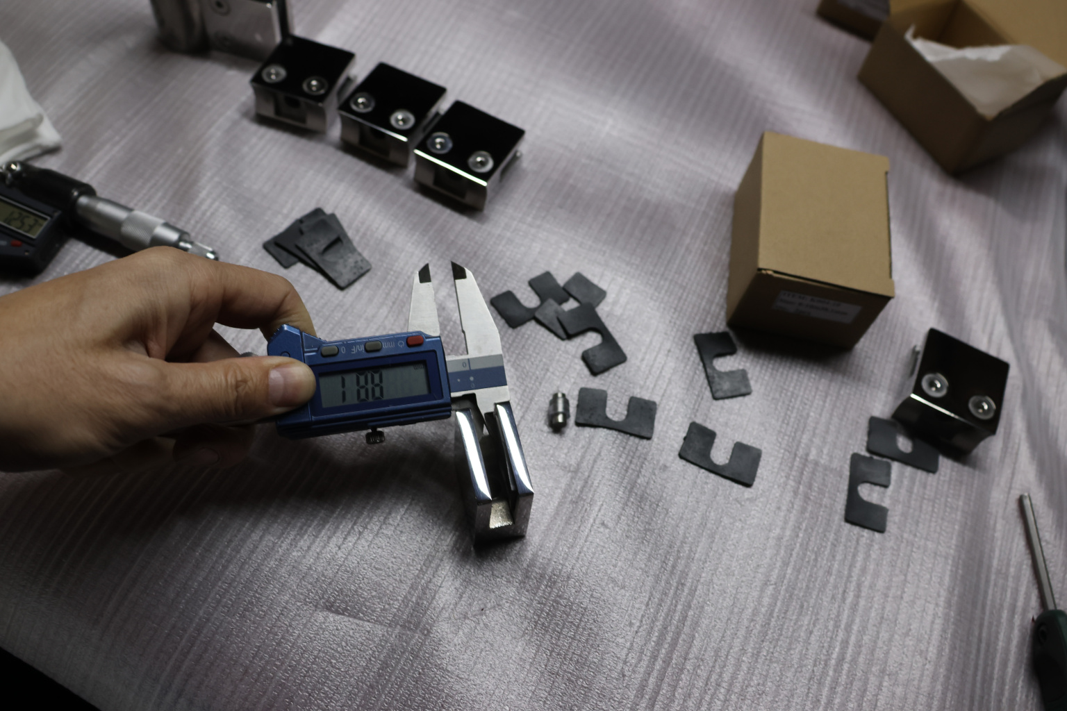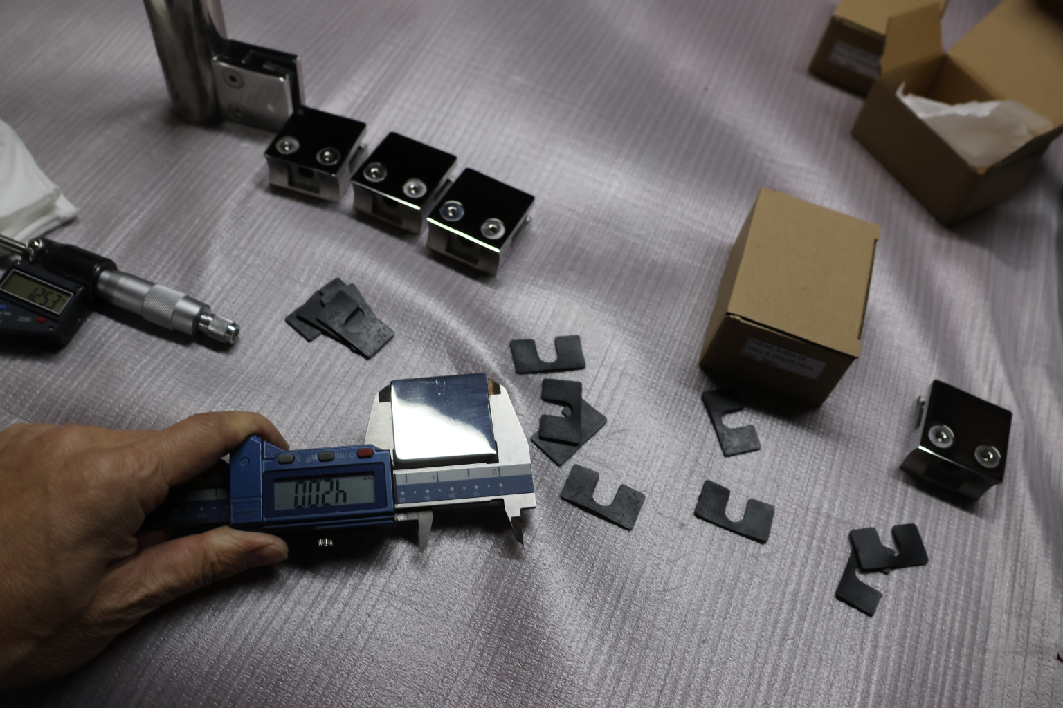 Стеклодержатель литой квадратный с вставками под стекло 8-10 мм (4+4 мм), на стойку Ø38.1 мм, 41х22х42, полированный, (AISI 304) k004-10