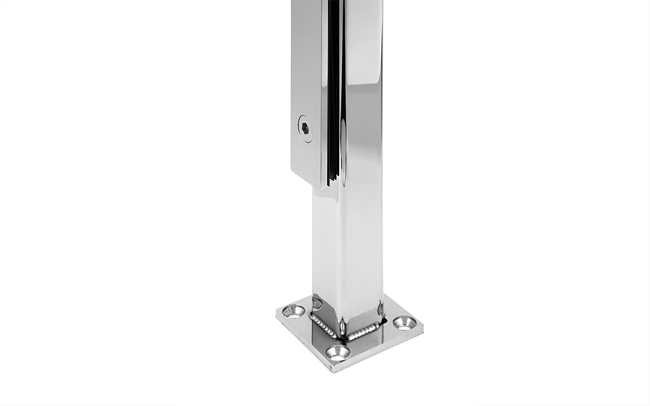 Прижимная пластина фиксирует стекло по всей длине пластины и позволяет более жестко держать ограждение. Стенки трубы стеклодержателя выполнены из стали толщиной 5 мм, что выгодно выделяет нашу модель на фоне конкурентов, которые делаются из трубы 1.5 мм.