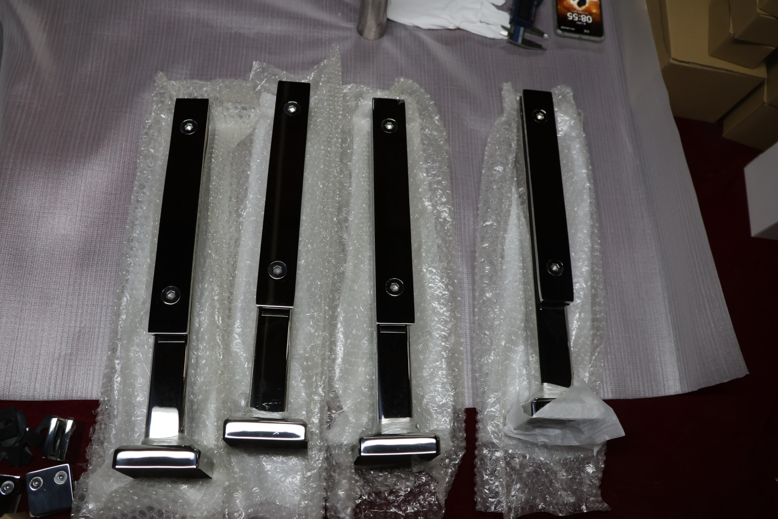 Стойка крепится к полу через отверстия в фланце диаметром 9 мм (4 шт), крепеж выбирается в зависимости от поверхности на которую необходимо смонтировать деталь. Для бетона, это шпилька 8 мм, для дерева, это всевозможные саморезы , которые выбираются в зависимости от толщины породы. Затем устанавливается стекло, через отверстия диаметром 16 мм и фиксируется прижимной пластиной с помощью шестигранника