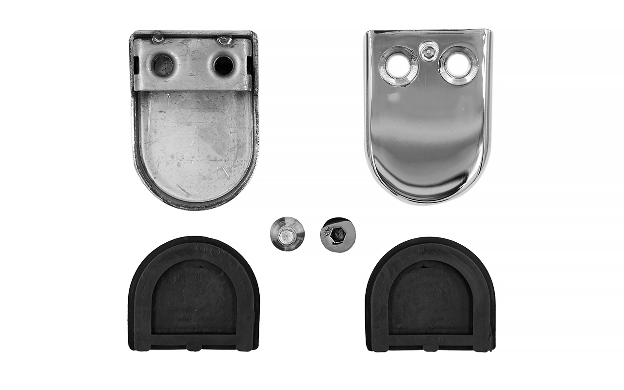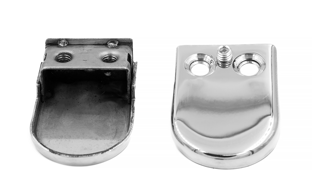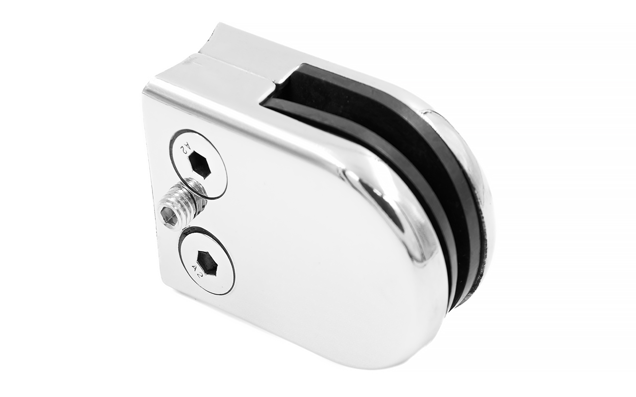 Стеклодержатель штампованный под стекло 8мм (4+4 мм), под стойку Ø38.1 мм 40х22х54, полированный (AISI 304) k538-2