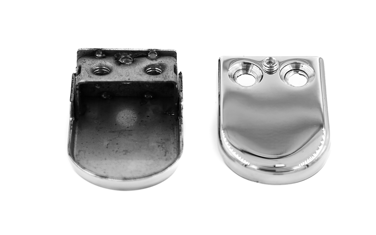 Стеклодержатель штампованный под стекло 8мм (4+4 мм), под стойку Ø38.1 мм 40х22х54, полированный (AISI 304) k538-2
