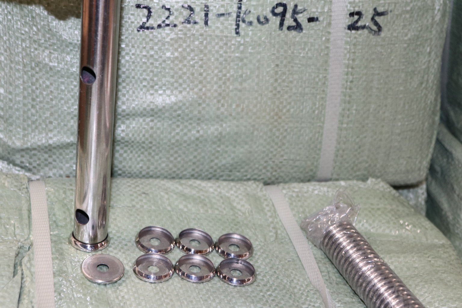 Стеклодержатель Ø50х10х18, шпилька М16х205 мм, для стекла 8-40 мм, AISI (201), с возможностью регулировки выноса до 65 мм, для торцевого крепления стекла, полированный, литой k277-3