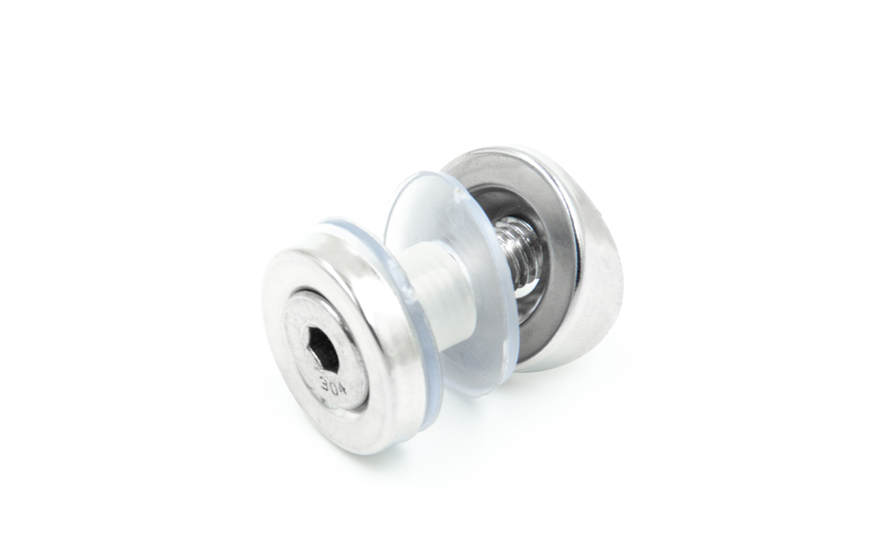 Ускоренная установка стекла в диапазоне толщин от 6 до 18 мм на круглой стойке из нержавеющей трубы Ø38,1 мм.