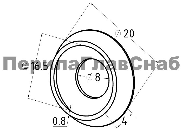 Шайба подкладочная Ø16 мм, 20х4х0.8, с отверстием Ø8 мм (AISI 201) k096