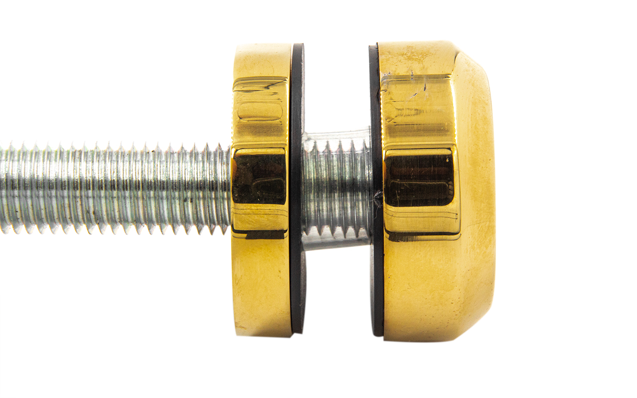 Комплект торцевого крепления несущего стекла, гайка-шайба диаметром 50х10х18 мм с внутренней резьбой М16. Комплект полированный с покрытием нитрида титана под золото, материал - AISI 201
