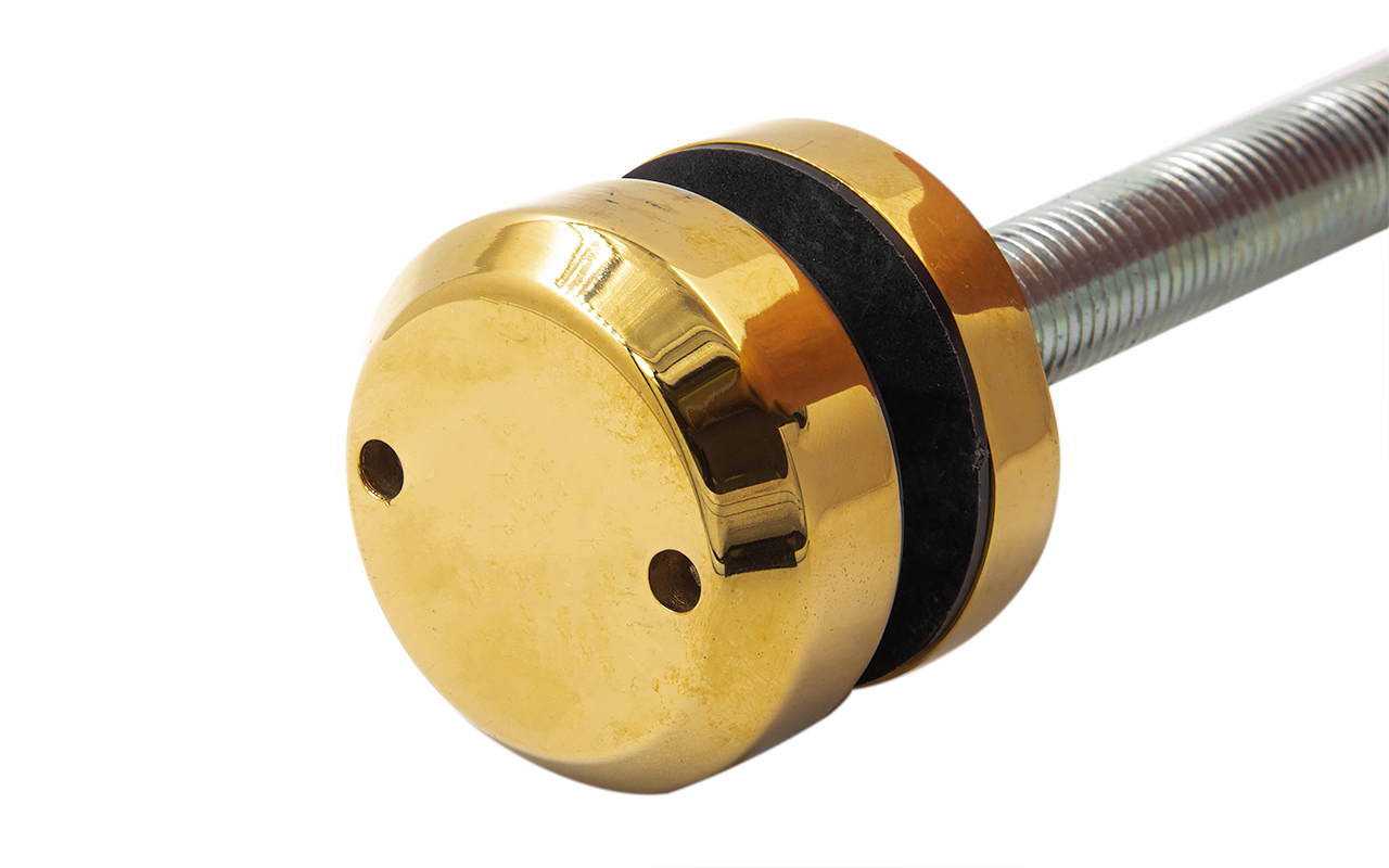 Стеклодержатель Ø50х10х18, шпилька М16х205 мм, для стекла 8-40 мм, AISI (201), с возможностью регулировки выноса до 65 мм, для торцевого крепления стекла, полированный, литой k277-3 купить в Красноярске