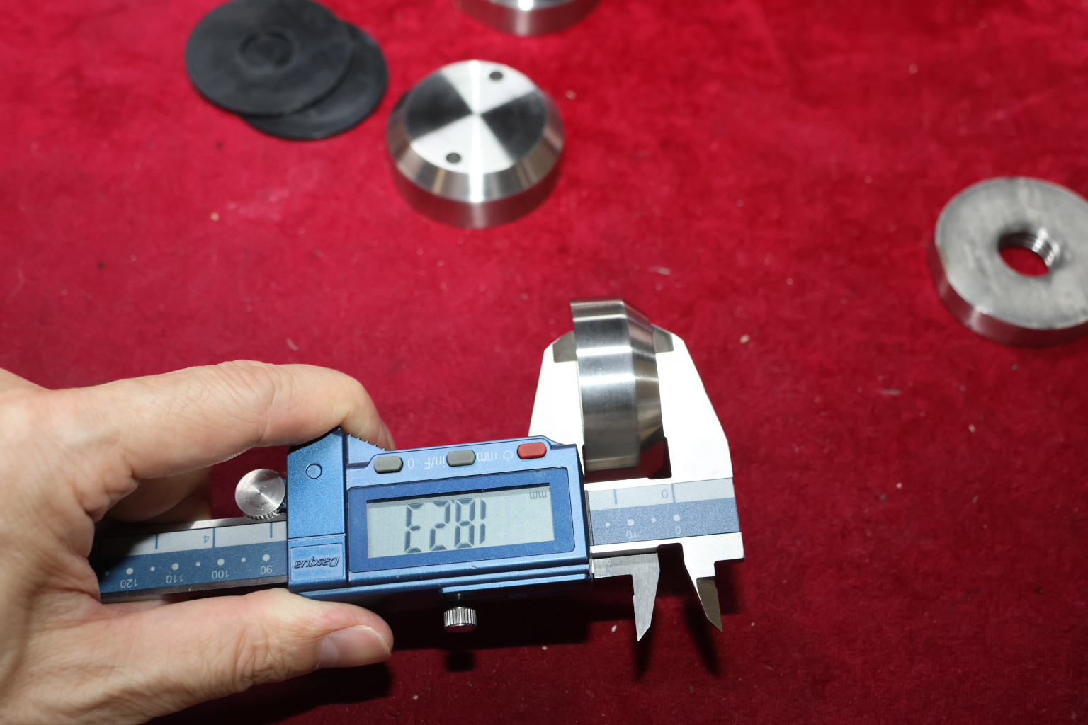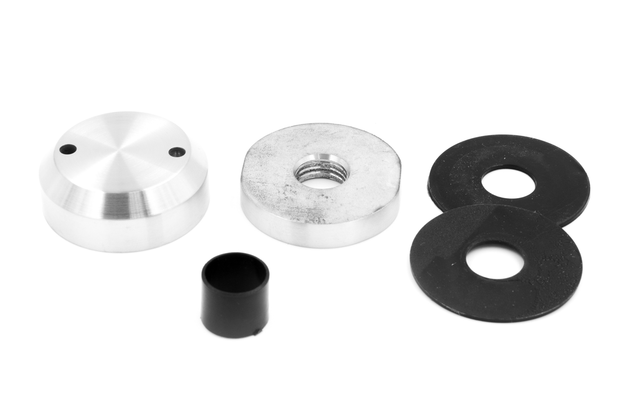 Точечный стеклодержатель для торцевого крепления несущего стекла в широчайшем диапазоне от 8 (4+4) мм до 40 (20+20) мм. Диаметр наружной (хрюшка) и внутренней шайб по 50 мм.