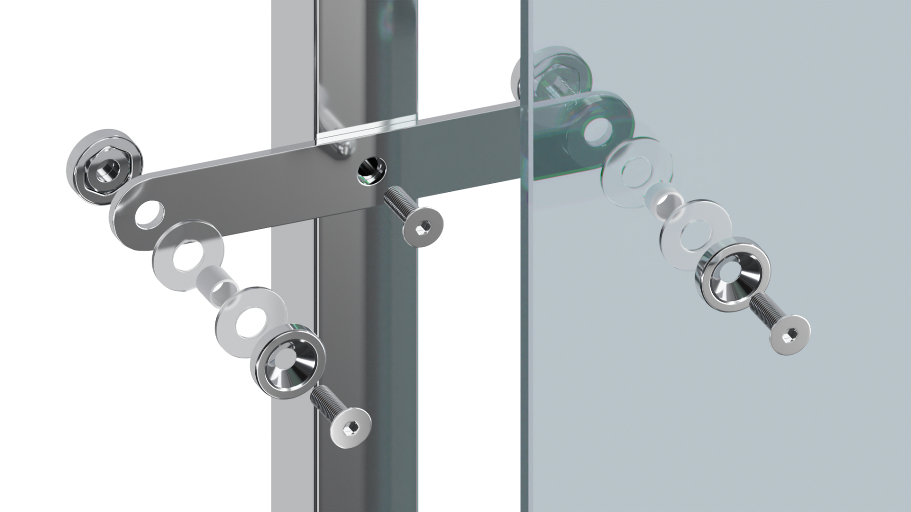 Cтойка квадратная 40х40: 2 пластинчатых стеклодержателя, полированная, высота 950 мм (aisi 304)