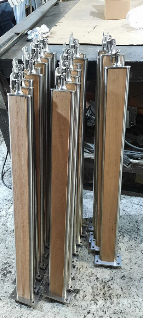 Стойка в сборе с деревянными вставками из дуба на 4 анкера шлиф.
