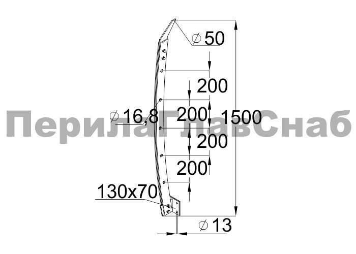 Стойка эксклюзивная с 5 отверстиями под ригель, крепление в торец, нерегулируемый ложемент (AISI 304) k776