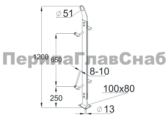 Готовая стойка Ø38,1х950 мм деревянная, со вставками из нержавеющей стали 2х100 мм с 2 стеклодержателями k741-2-R купить в Красноярске