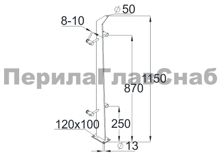 Стойка круглая Ø38.1: 2 литых зажимных стеклодержателя, под стекло 8-10 мм, полированная, высота 950 мм (AISI 304) k722-L купить в Красноярске