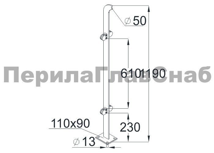 Стойка круглая Ø38.1: 2 литых зажимных стеклодержателя, под стекло 8-10 мм, полированная, высота 950 мм (AISI 304) k722-L купить в Красноярске