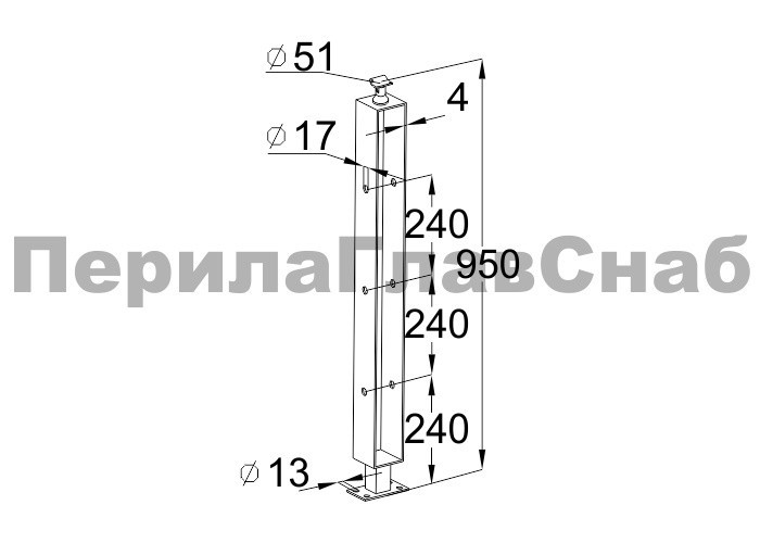 Стойка квадратная 40х40: 4 литых стеклодержателя, полированная, высота 950 мм (AISI 304) k746 купить в Красноярске