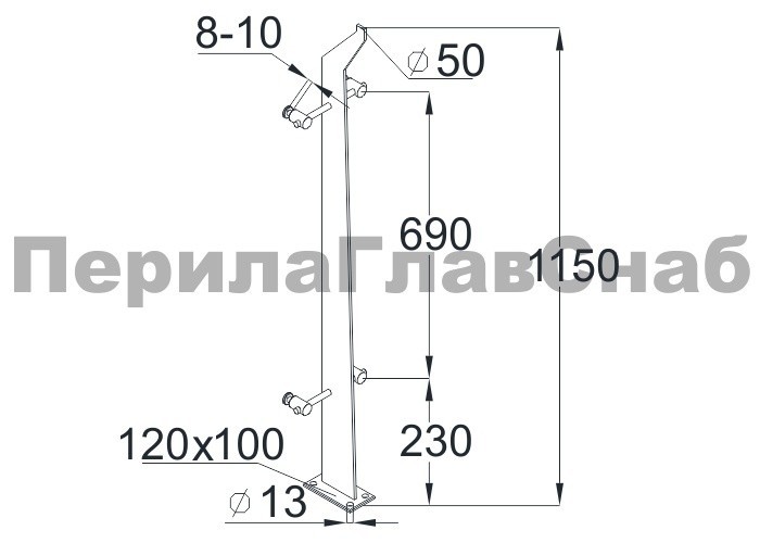 Готовая стойка 40х40х950 мм, деревянная, со вставками из нержавеющей стали 2х100 мм с 3 ригеледержателями k740-1-G купить в Красноярске