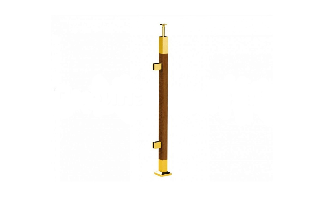 Готовая стойка 40х40х950 мм, деревянная, со вставками из нержавеющей стали 2х100 мм с 2 зажимными стеклодержателями, под золото k740-4-R-G купить в Красноярске