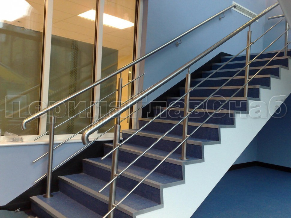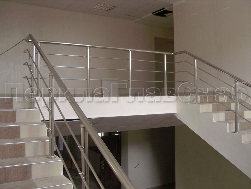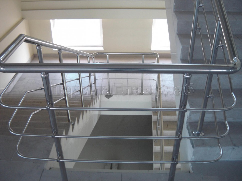 Четыре ригеля на сварке, квадратный поручень и круглые стойки