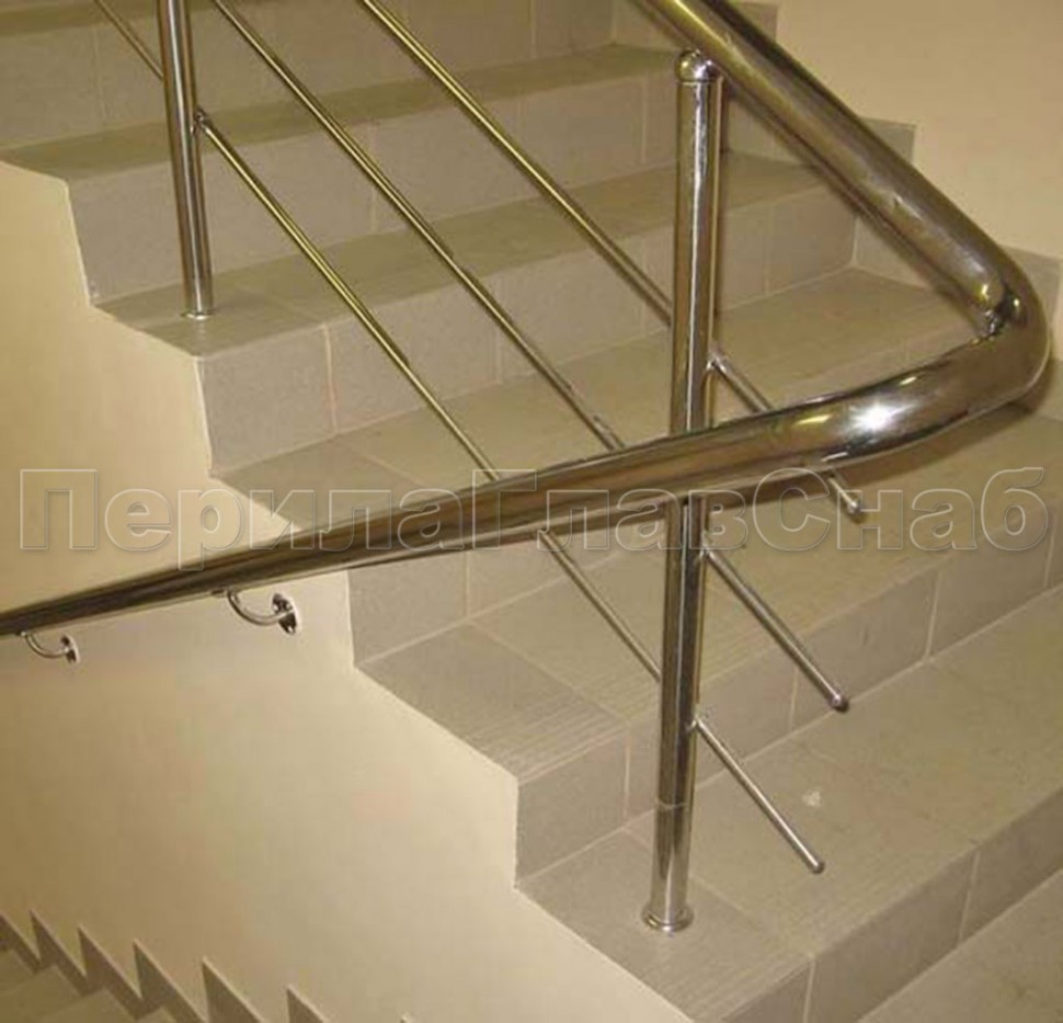 Четыре ригеля на держателях, круглый поручень и квадратные стойки