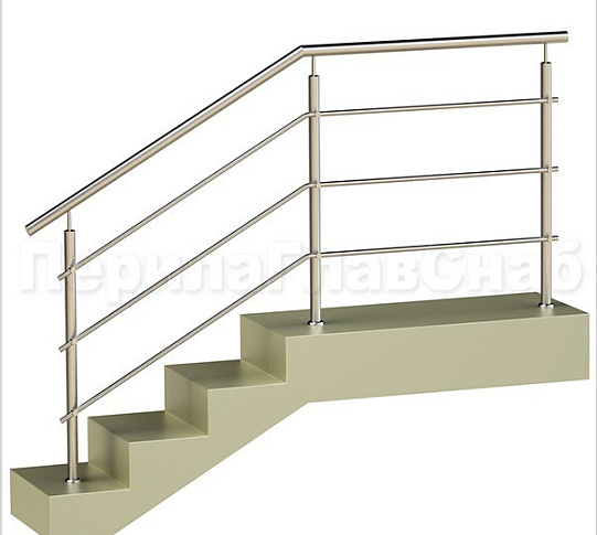 Три ригеля на держателях, круглый поручень и круглые стойки для крыльца