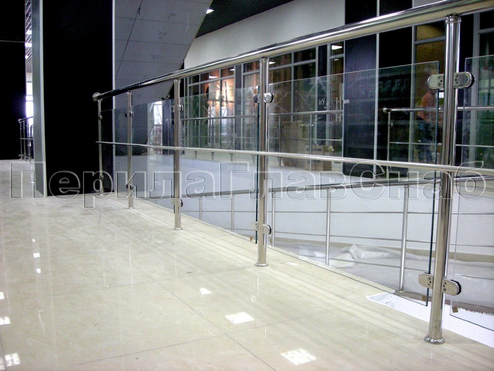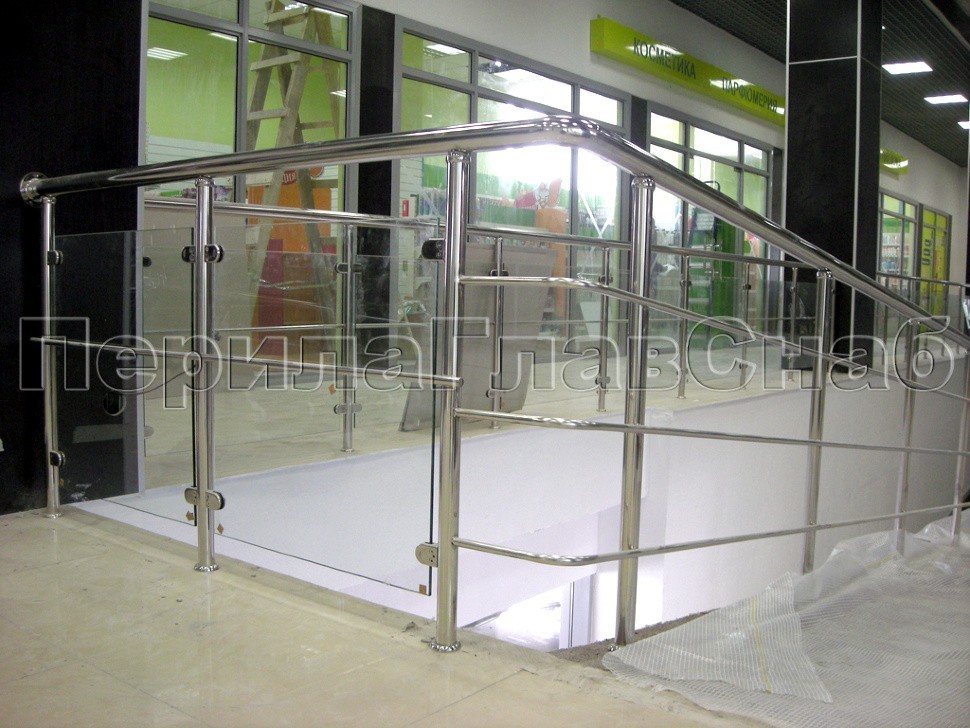 В крупнейшем торговом центре г. Щербинка была установлена целая сеть ограждений из нержавеющей стали, это и перила на входе, и пандусы с ограждениями и поручнями для маломобильной категории граждан, в частности инвалидов и детей.