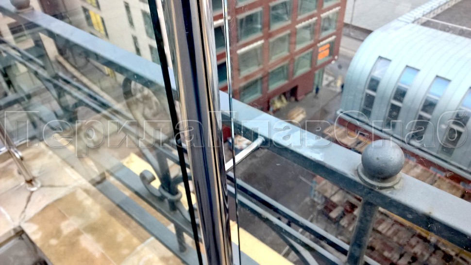 Конструктора совместно с инженерами и дизайнерами «ПерилаГлавСнаб» разработали специальные плоские миниатюрные стойки из полированной нержавеющей стали (с высокой несущей способностью) и фитинги соединения стекол между собой в стиле стоек для большей жесткости и надежности конструкции. Это решения заказчик принял, так как оно полностью подходило его требованиям: практически нет металла (полированная нержавейка растворяется в пространстве) и ничто не мешает созерцать красивый городской пейзаж.