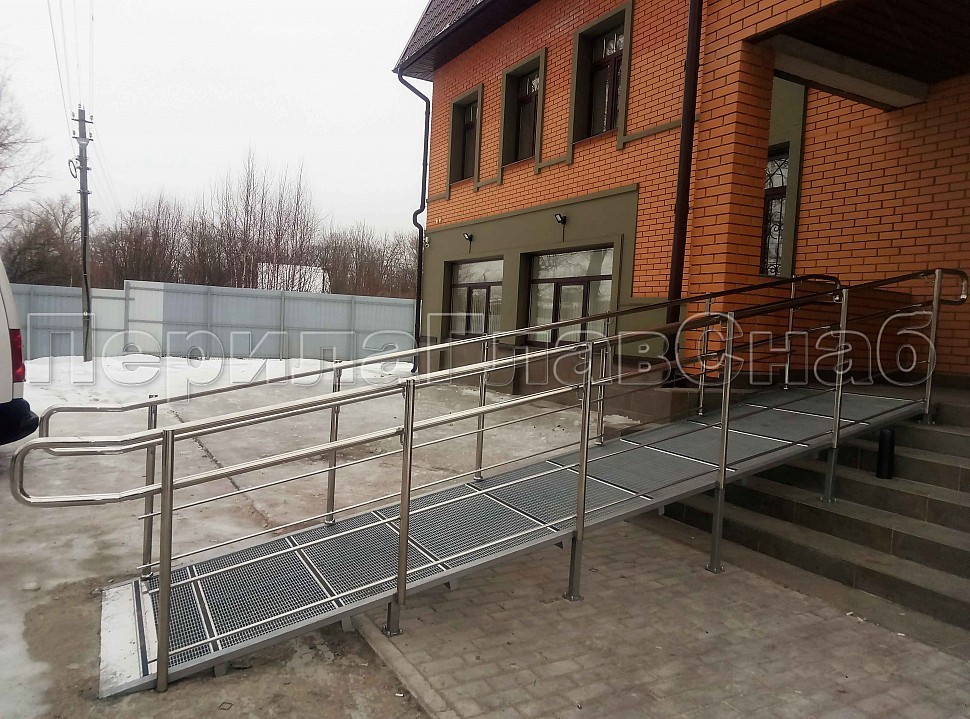 Нержавеющее ограждение пандуса на металлической платформе для людей с ограниченными возможностями