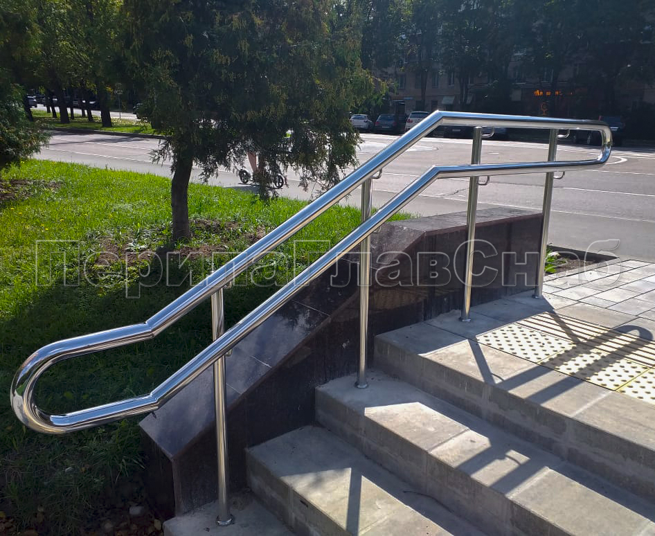 Наша компания «ПерилаГлавСнаб» выполнила заказ на изготовление и монтаж ста пятидесяти метров погонных ограждений из полированной нержавеющей стали, в рамках программы по благоустройству дворовых территорий города Москвы. Так как ограждения устанавливались на улице, мы использовали нержавеющую трубу и комплектующие марки стали Aisi 304. Ограждения состояли из следующего конструктива: