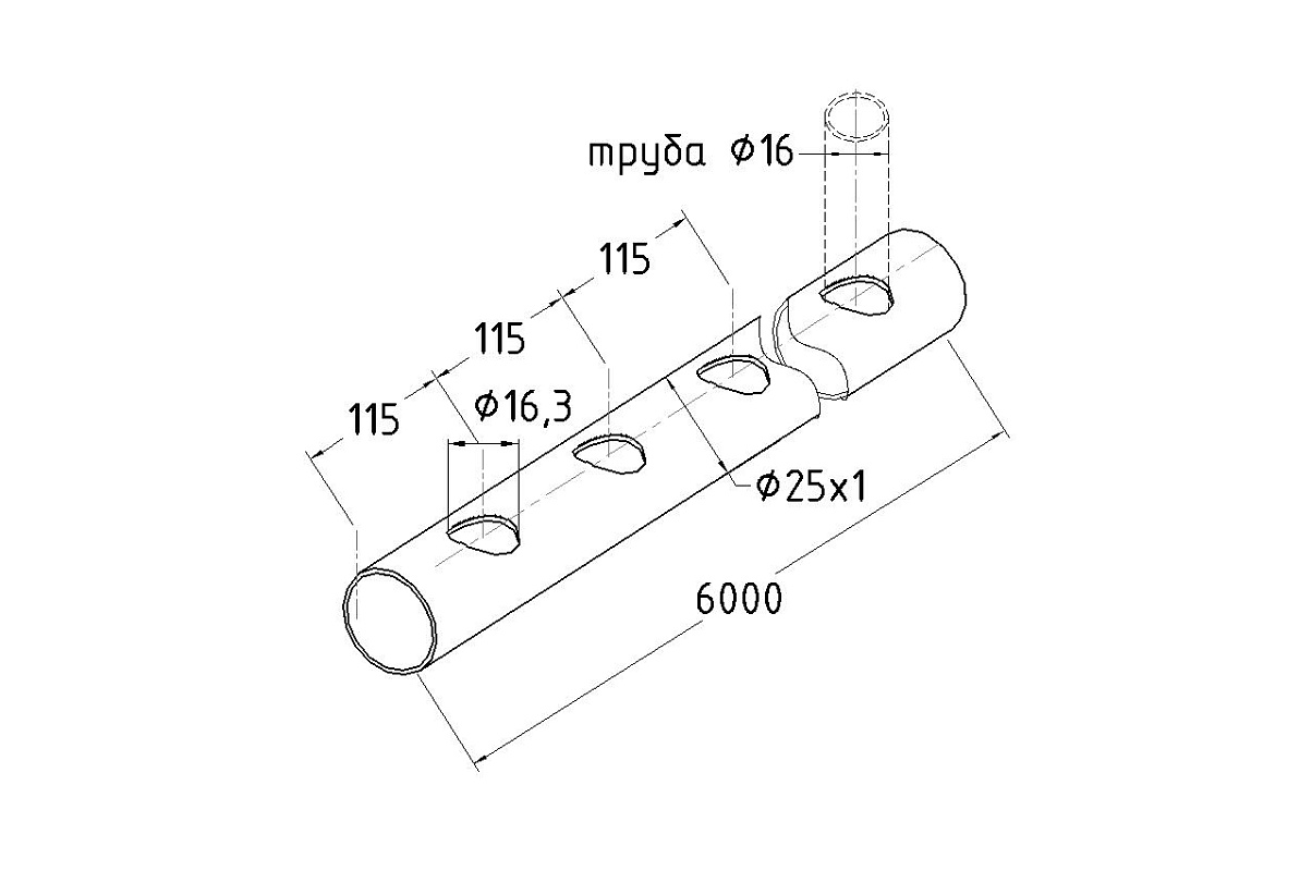 Труба AISI 201 25х1х6000, с перфорацией под Ø16, 30°, GRIT 600 831-5