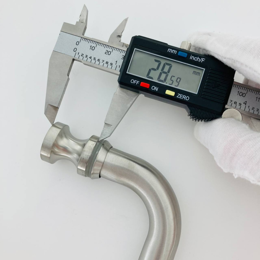 Дверная ручка с кнобом для стекла 8-10 мм, 19х201 мм, отверстие 12 мм, шлифованная, марка стали- AISI 304